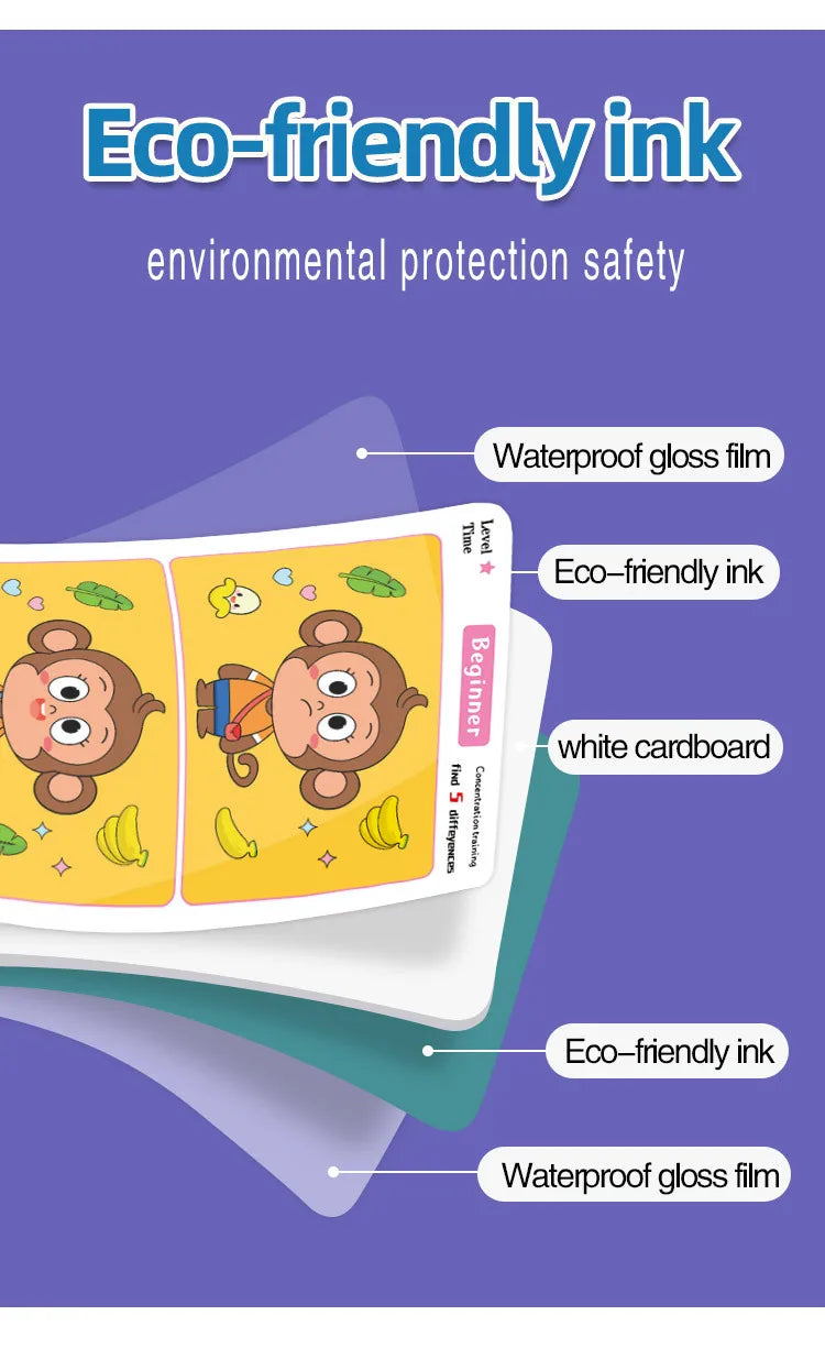The child matches images, words, or clues following clear visual prompts. Each interaction reinforces language recognition and logical thinking. Repetition builds confidence, while the hands-on format keeps learning active rather than passive. The compact size makes it easy to use at home, while traveling, or outdoors.